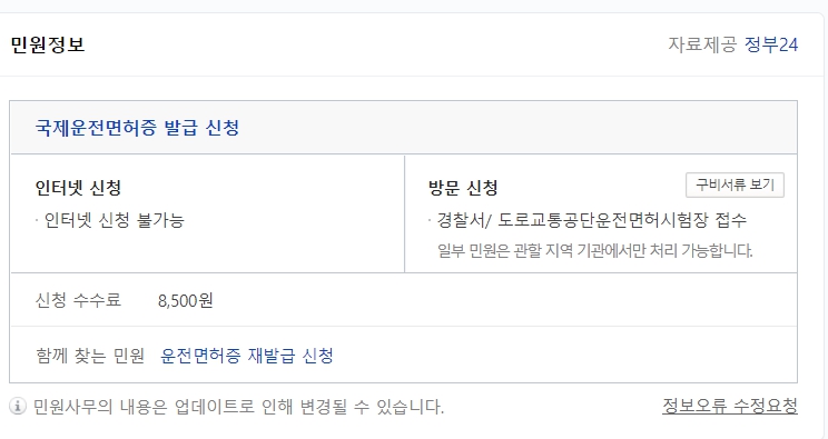 우리나라 대표 검색사이트인 네이버에 '국제운전명허증'을 검색하면 인터넷 신청이 불가하며 경찰서와 운전면허시험장에 방문신청만 가능하다고 나오는데 잘못된 정보입니다.