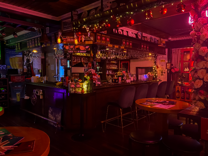 영국 여행 중 방문한 펍들이 너무 매력적이어서 한국에도 이런 가게가 있었으면 좋겠다는 생각으로 탄생한 펍입니다. 영국을 이태원으로 옮겨놓은 것 같은 영국식 인테리어와 브리티시 팝이 여행을 온 느낌마저 듭니다.