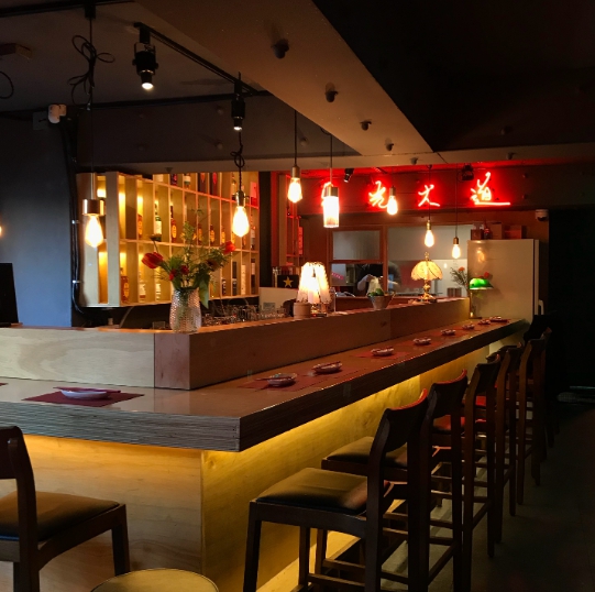 성광대도는 해방촌 위쪽에 위치하고 있는 홍콩영화 분위기가 물씬 풍기는 퓨전 펍입니다. 조금 찾기 어려우실 수 있으니 사진에 저 별 4개의 붉은 간판을 기억해주세요. 간판을 보고 바깥 계단으로 내려가면 인상적인 빨간 철문이 바로 성광대도입니다.